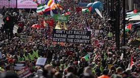 (Reuters) LONDON, March 28 – Tens of thousands of protesters took to the streets of central London on Saturday for a “March to Stop…