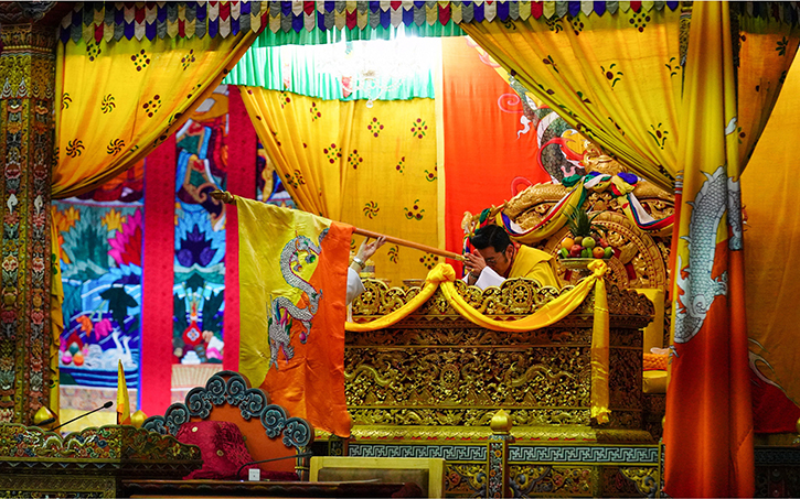 སྤྱི་ཟླ་ ༡༡ པའི་ཚེས་ ༤ ལུ་ སྤྱི་ཚོགས་ ༣ པའི་ རྒྱལ་ཡོངས་ཚོགས་འདུ་ཆེན་མོ་ ཐེངས་ ༨ པའི་ འགོ་འབྱེད་རྟེན་འབྲེལ་ནང་ མི་དབང་མངའ་བདག་རིན་པོ་ཆེ་མཆོག་གིས་ རྒྱལ་ཁབ་ཀྱི་ གནས་སྟངས་ལུ་ ཐུགས་ཀྱི་ཚ་གྱང་ཡོད་ལུགས་ཀྱི་ གསུང་བཤད་གནང་ཡི།