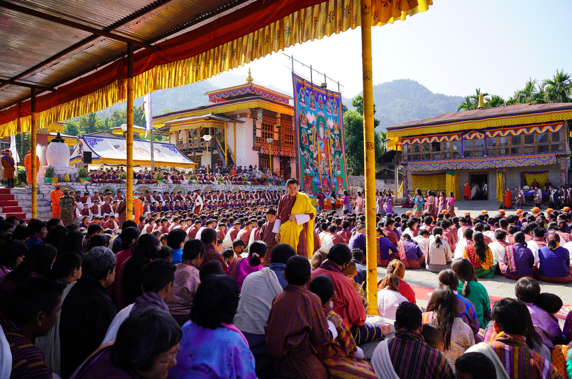 དེ་བཟུམ་སྦེ་ རྒྱལ་བ་ལྷ་ལས་བབས་པའི་ དུས་ཆེན་དང་བསྟུན་ཏེ་ མི་མང་ལུ་ གུ་རུ་རིན་པོ་ཆེའི་ མཐོང་གྲོལ་གྱི་ མཇལ་ཁ་ཡང་ གནང་ཡོདཔ་ད་ གཞལམ་སྒང་དང་ ཉེ་འདབས་ཀྱི་ རྫོང་ཁག་ཚུ་ལས་ དད་ཅན་གྱི་ མི་སེར་བརྒྱ་ཕྲག་སྦེ་ ཚེས་བཅུ་མཇལ་བར་ འཛོམས་ཡོདཔ་ཨིན་པའི་གནས་ཚུལ།