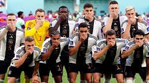 On Wednesday, players in the German team covered their mouths in protest as they posed for a pre-match photo.