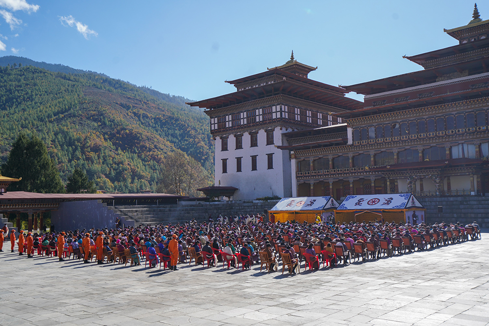 སྤྱི་ཟླ་ ༡༡ པའི་ཚེས་ ༢༤ ལུ་ མི་དབང་མངའ་བདག་རིན་པོ་ཆེ་མཆོག་གིས་ བཀྲིས་ཆོས་རྫོང་གི་ རྟེན་འབྲེལ་ཐང་ནང་སྦེ་ མི་ངོམ་ ༥༧༩ ལུ་ འབྲུག་པའི་མི་ཁུངས་ཀྱི་ སྐྱིད་སྡུག་གནང་ནུག། དེ་བསྒང་ མི་ཁུངས་ཐོབ་མི་ཚུ་གིས་ ཁས་བླངས་དམ་བཅའ་ཞུ་བའི་ཁར་ མི་དབང་མངའ་ཞབས་མཆོག་གི་ ཞལ་མཇལ་ནི་གི་ གོ་སྐབས་ཡང་ ཐོབ་ཡོདཔ་ཨིན་པས། ད་ཚུན་གྱི་རིང་ལུ་ མི་དབང་མཆོག་གིས་ སྐྱིད་སྡུག་ཚུ་ གནང་པའི་ནང་གསེས་ལས་ མི་ངོམ་ ༢༥,༠༠༠ དེ་ཅིག་ལུ་ འབྲུག་པའི་མི་ཁུངས་ཀྱི་ སྐྱིད་སྡུག་གནང་ཡོད་པའི་ གནས་ཚུལ་མདོར་བསྡུས་་།