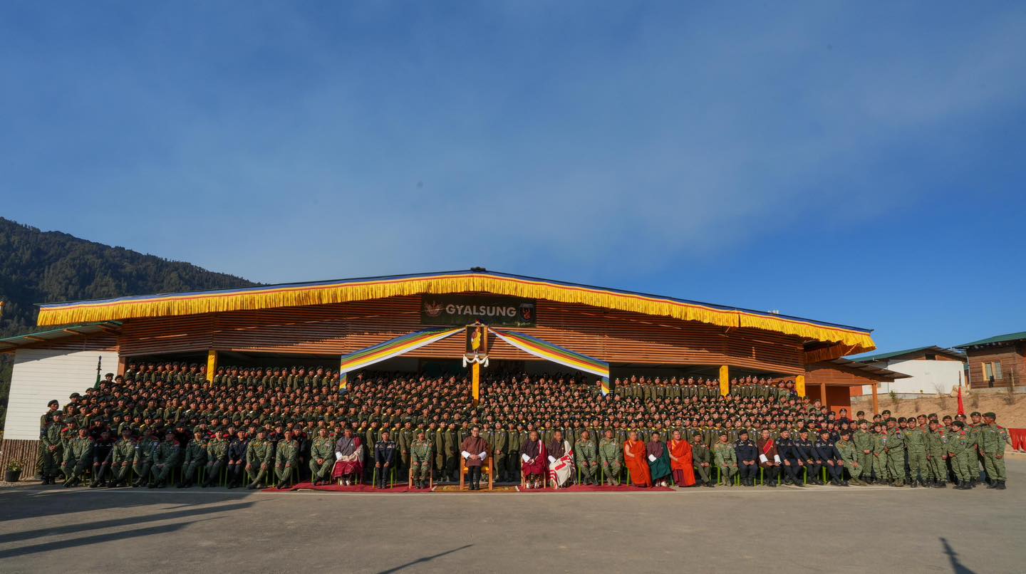 སྤྱི་ཟླ་ ༡ པའི་ཚེས་ ༤ ལུ་ མི་དབང་མངའ་བདག་རིན་པོ་ཆེ་མཆོག་གིས་ དབང་འདུས་ཕོ་བྲང་ མཁོ་ཏོག་ཁ་ལུ་ཡོད་མི་ རྒྱལ་སྲུང་སྦྱོང་བརྡར་སྤེལ་ཁང་ནང་ ཆིབས་བསྐྱོད་གནང་སྟེ་ ད་རེས་ནངས་པར་ སྦྱོང་བརྡར་འབད་བའི་བསྒང་ཡོད་མི་ ཤོ་ཐེངས་ ༢ པའི་ རྒྱལ་སྲུངཔ་ཚུ་དང་ མཇལ་ཕྲད་གནང་ནུག། རྒྱལ་སྲུངཔ་ཤོ་ཐེངས་ ༢ པའི་ སྦྱོང་བརྡར་དེ་ཡང་ སྤྱི་ལོ་ ༢༠༢༤ སྤྱི་ཟླ་ ༡༢ པའི་ཚེས་ ༡༦ ལས་ འགོ་བཙུགས་ཡོདཔ་ད་ སྤྱི་ལོ་ ༢༠༢༥ སྤྱི་ཟླ་ ༣ པའི་ཚེས་ ༡༥ ལུ་ མཇུག་བསྡུ་ནི་ཨིན་པས། ད་རེས་ ཤོ་ཐེངས་ ༢ པའི་ནང་ སྦྱོང་བརྡར་འབད་མི་ རྒྱལ་སྲུངཔ་ཚུ་ཡང་ མཁོ་ཏོག་ཁ་ལུ་ ༤༨༨ དང་ རྒྱལ་པོའི་ཞིང་ལུ་ ༢༤༦ པདྨ་ཐང་ལུ་ ༤༧༩ རྒྱ་མཚོ་གླིང་ལུ་ ༤༨༩ འབདཝ་ད་ བདེ་སྲུང་སྦྱོང་བརྡར་སྤེལ་ཁང་ ༤ གི་ནང་ བདེ་སྲུངཔ་བསྡོམས་ ༡,༧༠༢ ཡོདཔ་ཨིན་པའི་གནས་ཚུལ།