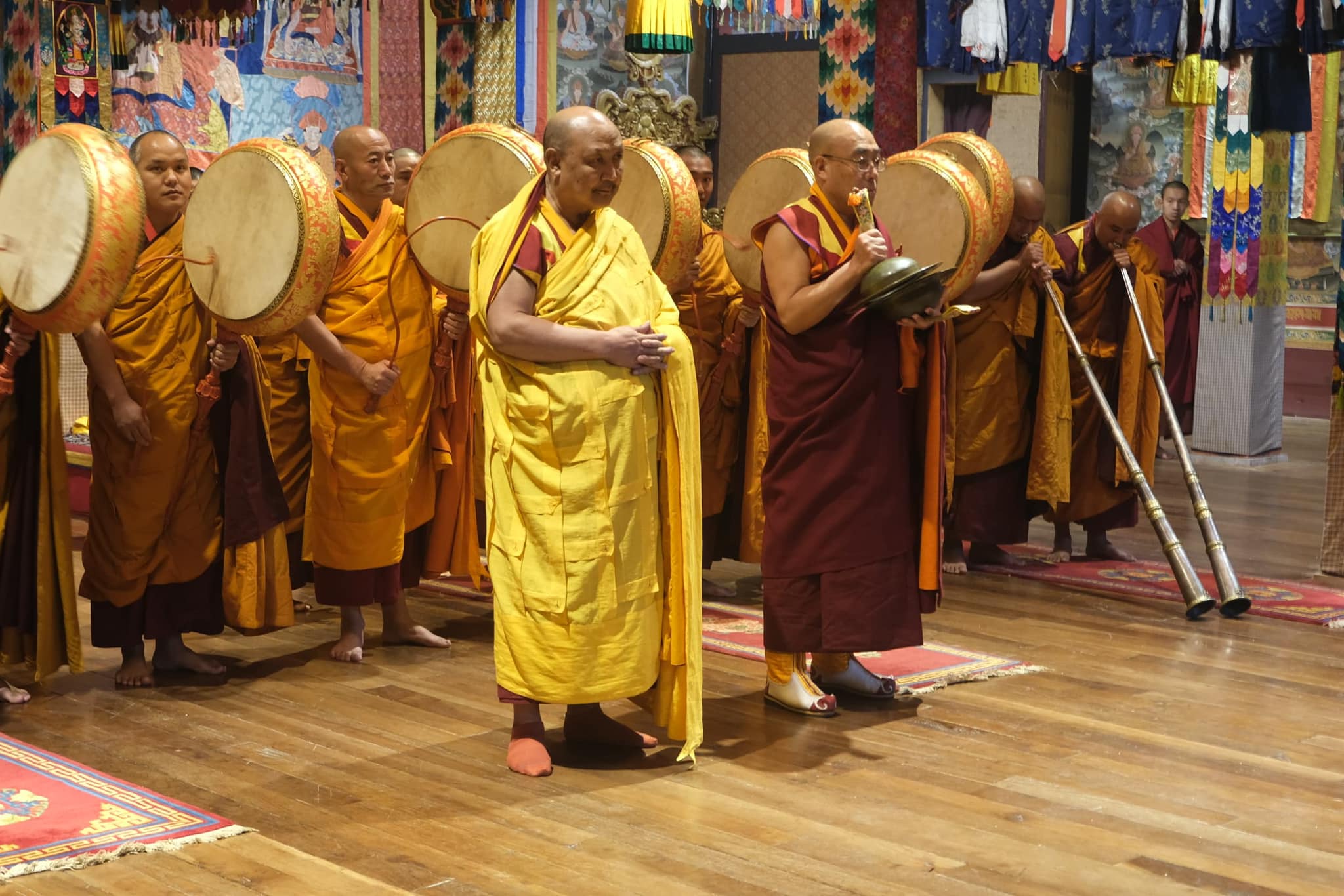 སྤུངས་ཐང་བདེ་ཆེན་ཕོ་བྲང་ནང་ གཞུང་གྲྭ་ཚང་གི་ རྡོ་རྗེ་སློབ་དཔོན་མཆོག་ དབུ་བཞུགས་ཐོག་ལུ་ ཚོགས་ཀྱི་སློབ་དཔོན་མཆོག་དང་ དགེ་འདུན་ཞལ་གྲངས་ ༣༥༠ ལྷགཔ་ཅིག་གིས་ ལོ་བསྟར་གནང་སྲོལ་ཡོད་པའི་ མགོན་དབང་སྒྲུབ་ཆེན་ ཐེངས་ ༣༨༣ པ་འདི་ གནང་དོ་ཡོདཔ་ཨིན་པས།