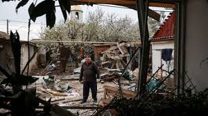 He posted pictures of a fire blazing out of control and apartment buildings with windows smashed and facades damaged.