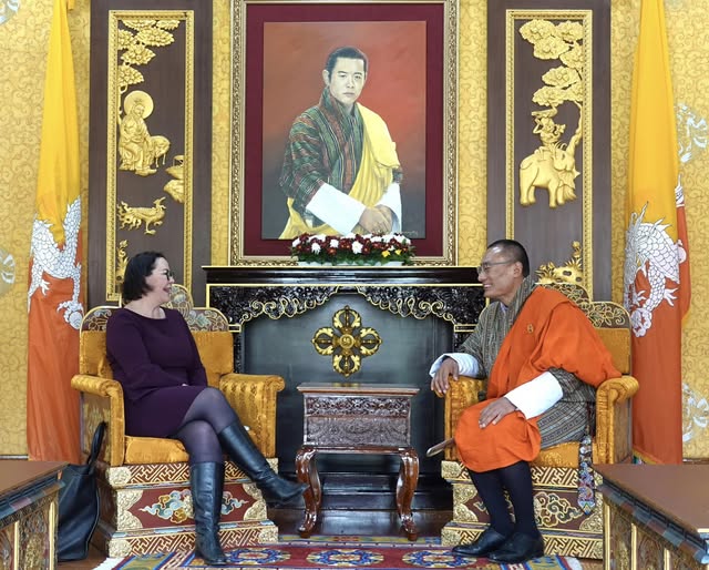དེ་བསྒང་ མི་རྗེ་བློན་ཆེན་གྱིས་ ཨམ་ཧེར་ཤི་གིས་ ཁྱད་དུ་འཕགས་པའི་ གནས་ཡུན་ནང་ འཛམ་གླིང་སྤྱི་ཚོགས་དང་ འབྲུག་གཞུང་གི་བར་ན་ མཉམ་འབྲེལ་རྩ་བརྟན་བཟོ་ནི་ལུ་ བརྩི་མཐོང་ཅན་གྱི་ ཕན་ཐོགས་བྱུང་མི་ལུ་ བསྟོད་བསྔགས་མཛད་ཡོདཔ་ཨིན་པས།