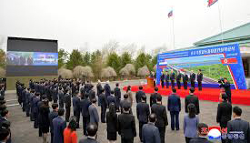 སྤྱི་ཟླ་ ༤ པའི་ཚེས་ ༢༩ ལས་ ར་ཤི་ཡ་དང་ བྱང་ཀོ་རི་ཡ་གིས་ ཊུ་མེན་གཙང་ཆུ་བདའ་སྟེ་ ཟམ་བཟོ་སྐྲུན་འབད་ནི་ འགོ་བཙུགས་ཡོདཔ་ད་ དེ་ཡང་ རྒྱལ་ཁབ་ ༢ ཀྱི་བར་ན་ མཐུན་ལམ་གོང་འཕེལ་འགྱོ་བའི་ རྟགས་མཚན་ཅིག་ཨིནམ་སྦེ་བཀོད་ནུག།