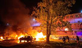It posted photos of firefighters battling large blazes at night at what appeared to be a residential building.