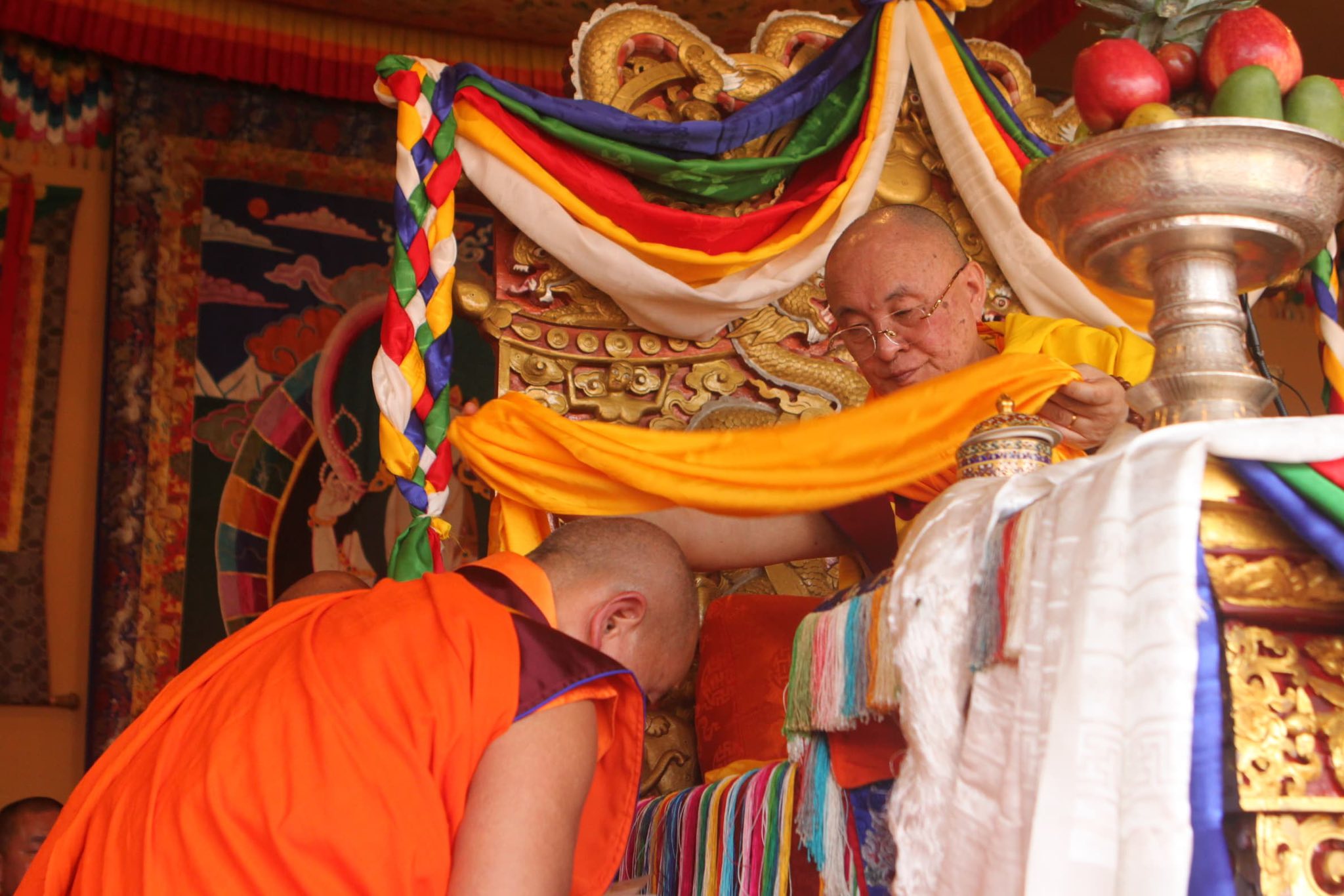 སྤྱི་ཟླ་ ༦ པའི་ཚེས་ ༡༡ ལུ་ སྐྱབས་རྗེ་རྗེ་མཁན་རིན་པོ་ཆེའི་ཞབས་ལས་ སྟོན་པའི་དུས་ཆེན་ལྔ་འཛོམས་ བརྩི་སྲུང་དང་འབྲེལ་ཏེ་ ཀུན་གསལ་ཕོ་བྲང་ སྟོན་པ་རྡོར་གདན་མའི་ སྐུ་མདུན་ལུ་སྦེ་ བླ་མ་ཚེ་རིང་དབང་འདུས་རིན་པོ་ཆེ་ལུ་ ངོས་ལེན་དང་ གཟེངས་བསྟོད་ཀྱི་ བཀའ་ཐམ་གནངམ་དང་གཅིག་ཁར་ དགེ་ལེགས་ཕུག་ དྲན་ཤེས་ཁྲོམ་ཚོགས་ནང་ རྡོར་གདན་བཀྲིས་སྒོ་མང་མཆོད་རྟེན་ གསར་བཞེངས་ལས་འགུལ་གྱི་ ཁྲི་འཛིན་སྦེ་ བཀྲིས་ལེགས་དར་གནང་ཡི།