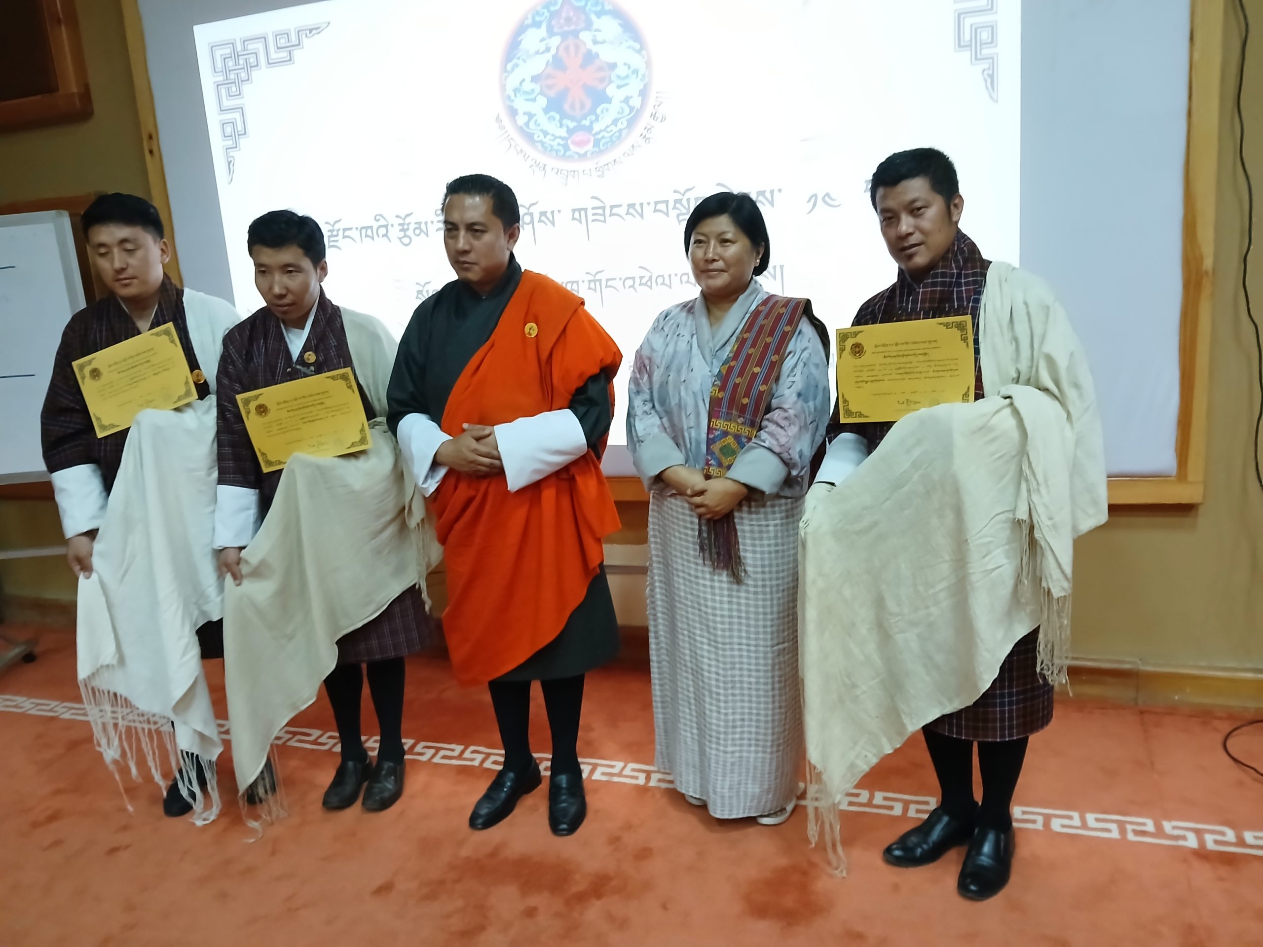 རྩོམ་རིག་འགྲན་བསྡུར་དེ་ནང་ ཕུར་པ་སྲིད་ཐུབ་ཀྱིས་ རྩོམ་བྲིས་འབད་མི་ དགའ་བ་དང་། རྣམ་རྒྱལ་དབང་ཕྱུག་གིས་ རྩོམ་བྲིས་འབད་མི་ ཆུ་ནས་ཤེས་རབ་ཀྱི་བསིལ་བ་ ཤིང་ནས་བྱ་སྤྱོད་ཀྱི་མེ་ཏོག། པདྨ་ལས་གྲགས་ཀྱིས་ རྩོམ་བྲིས་འབད་མི་ བརྩེ་གདུང་མེད་པའི་འཇིག་རྟེན། རྡོ་རྗེ་འཕྲིན་ལས་ཀྱིས་ རྩོམ་བྲིས་འབད་མི་ ངང་ལྷ་མཆོད་པ་ལྷ་ཟེར་མི་ཚུ་གིས་ གྲལ་གཏོགས་འབད་ནུག།