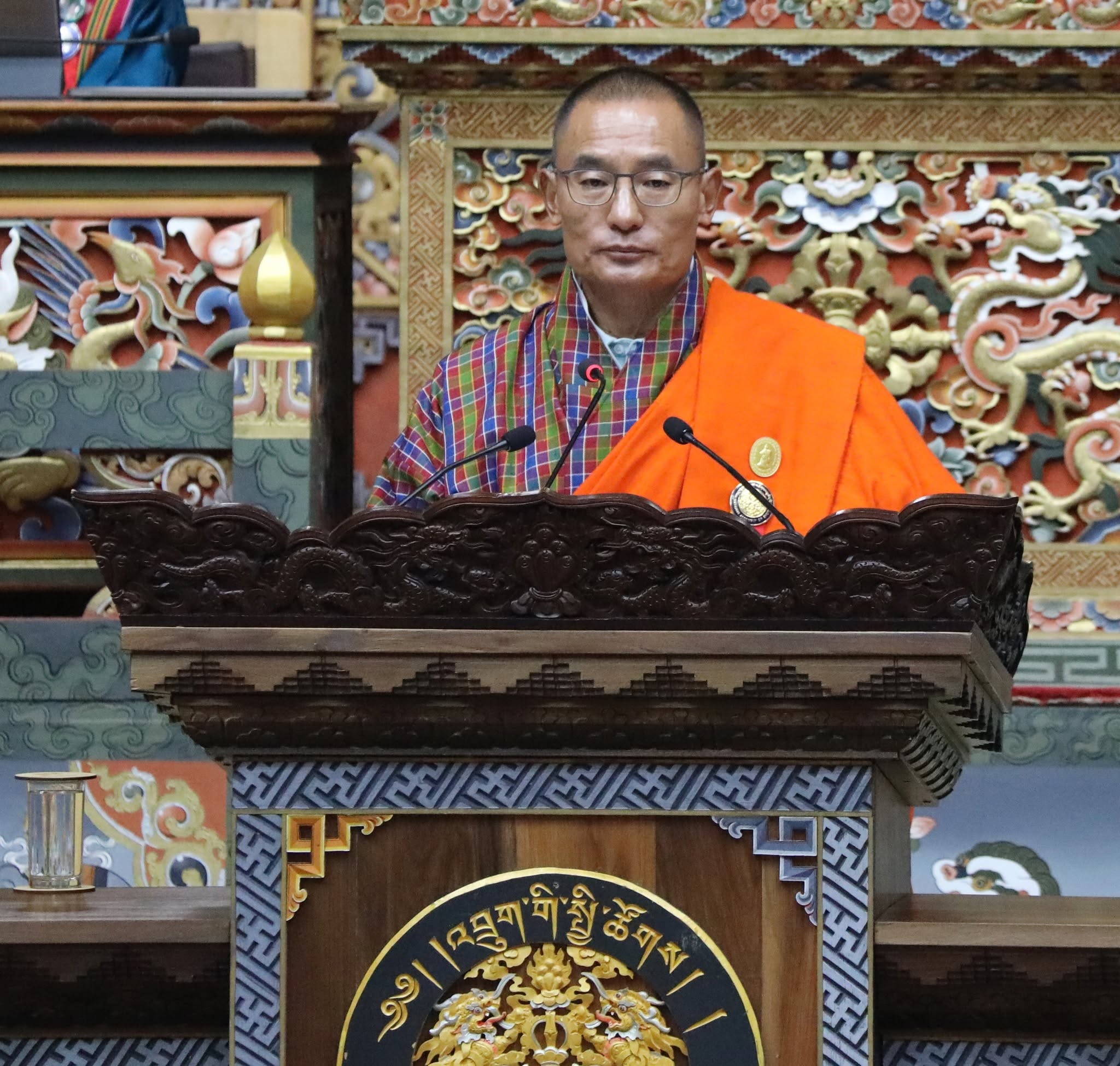 འབྲུག་གི་རྩ་ཁྲིམས་ཆེན་མོའི་ རྩ་ཚན་ ༡༠ པའི་ དགོངས་དོན་ ༡༠ པ་དང་འཁྲིལ་ཏེ་ མི་རྗེ་བློན་ཆེན་ དྲག་ཤོས་ཚེ་རིང་སྟོབས་རྒྱས་ཀྱིས་ སྤྱི་ཚོགས་ལྷན་བཞུགས་ནང་ རྒྱལ་ཁམས་ཀྱི་ ལོ་བསྟར་གནས་སྟངས་སྙན་ཞུ་ ཐེངས་ ༢ པ་ཕུལ་ནུག།