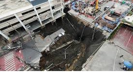 The 50-metre deep (164 feet) sinkhole extended about 900 square metres in front of the Vajira Hospital, halting traffic.