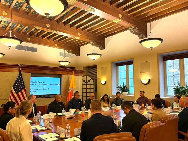 མི་རྗེ་བློན་ཆེན་གྱིས་ གསུང་གྲོས་དེ་ཡང་ དྲན་ཤེས་ཅན་གྱི་ ཡར་འཕར་གྱི་ གཞི་རྩ་ལུ་བརྟེན་པའི་ འབྲུག་གི་དཔལ་འབྱོར་གཞི་སྒྱུར་ཚུ་གི་སྐོར་ལས་ གཙོ་བོར་བཟུང་སྟེ་གནང་ཡོདཔ་ད་ ཨ་མི་རི་ཀའི་ སྒེར་སྡེ་ཚུ་དང་གཅིག་ཁར་ དངུལ་འབྲེལ་ཞབས་ཏོག་དང་ གཞི་རྟེན་མཁོ་ཆས་ བལྟ་བཤལ་ སླར་བྱུང་ནུས་ཤུགས་ཚུ་ནང་ མཉམ་འབྲེལ་གྱི་ གོ་སྐབས་ཚུ་ཡང་ འཚོལ་ཞིབ་གནང་ནུག།