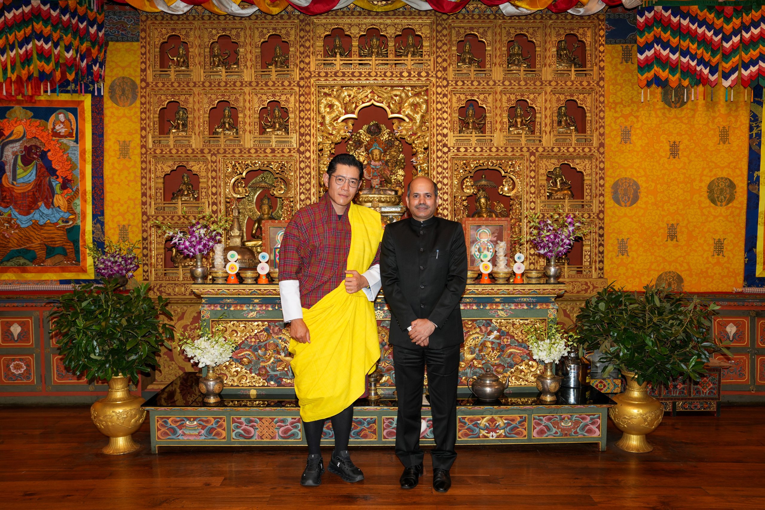དེ་སྦེ་ ངོ་སྤྲོད་ཡིག་ཆས་ཚུ་ ཕུལ་བའི་ཤུལ་ལུ་ གཞུང་ཚབ་སཱན་དིབ་ ཨ་རི་ཡ་དང་ ཨམ་ཌོག་ཊར་སུ་བེ་ཏ་སིང་ ༢ མི་དབང་མངའ་བདག་རིན་པོ་ཆེ་དང་ མི་དབང་རྒྱལ་བཙུན་མཆོག་གི་ སྐུ་མདུན་ལུ་ བཅར་ཡོད་པའི་གནས་ཚུལ།