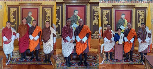 སྤྱི་ཟླ་ ༡༠ པའི་ཚེས་ ༡༣ ལུ་ རྩ་ཁྲིམས་ཅན་གྱི་ གོ་གནས་ཀྱི་ གནས་ཡུན་ཚང་མི་ འབྲུག་གི་བཙག་འཐུ་ལྷན་ཚོགས་ཀྱི་ བཙག་འཐུ་སྤྱི་ཁྱབ་ དྲགོས་བསོད་ནམས་སྟོབས་རྒྱས་དང་ ལྷན་འཛིན་ཨྱོན་ཚེ་དབང་ ལྷན་འཛིན་ཟླ་བ་བསྟན་འཛིན། རྒྱལ་གཞུང་རྩིས་ཞིབ་དབང་འཛིན་གྱི་ རྩིས་ཞིབ་ཡོངས་ཁྱབ་ བཀྲ་ཤིས། དེ་ལས་ ངན་ལྷད་བཀག་སྡོམ་ལྷན་ཚོགས་ཀྱི་ཁྲི་འཛིན་ བདེ་སྐྱིད་པདྨོ་དང་ ལྷན་འཛིན་རྒྱ་མཚོ་ ལྷན་འཛིན་ཀརྨ་རིག་འཛིན་ཚུ་ ཁ་བྲལ་སྨོན་འདུན་གྱི་དོན་ལས་ མི་རྗེ་བློན་ཆེན་གྱི་ སྐུ་མདུན་ལུ་བཅར་ནུག།