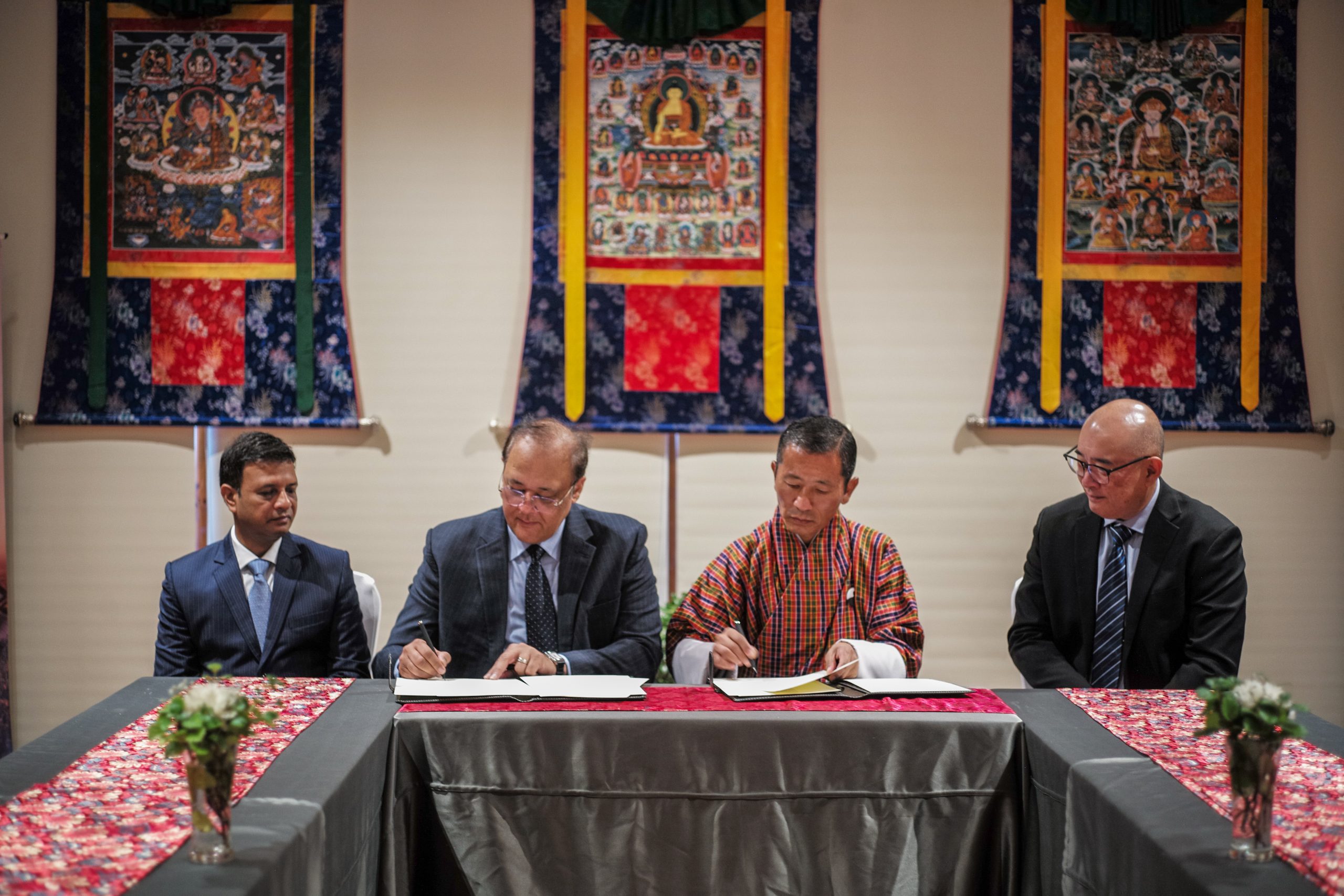 སྤྱི་ཟླ་ ༡༡ པའི་ཚེས་ ༡༠ ལུ་ རྒྱ་འབྲུག་ ༢ ཀྱི་ དཔལ་འབྱོར་མཉམ་འབྲེལ་ བཙན་ཐབས་ལུ་ བློ་གཏད་རུང་བའི་ ཁྲིམས་དོན་མདུན་ལམ་ཐོག་ལས་ མ་རྩ་གཞི་བཙུགས་འབད་མིའི་ ཡིད་ཆེས་ཡར་དྲག་གི་དོན་ལུ་ དགེ་ལེགས་ཕུག་ དྲན་ཤེས་ཁྲོམ་ཚོགས་དང་ རྒྱ་གར་གྱི་ ཁྲིམས་དོན་ལས་སྡེ་རྙིང་ཤོས་ ཁའི་ཏཱན་ལས་སྡེའི་བར་ན་ ཐབས་བྱུས་ཅན་གྱི་ གོ་དོན་ཆིངས་ཡིག་ཅིག་གུ་ མཚན་རྟགས་བཀོད་ནུག།