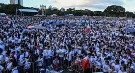 Many demonstrators set up tents in which to stay until Tuesday, the end of the protest which has drawn more than 600,000 people since it began on Sunday, organised by Iglesia Ni Cristo, a church of 2 million members, known for bloc voting.