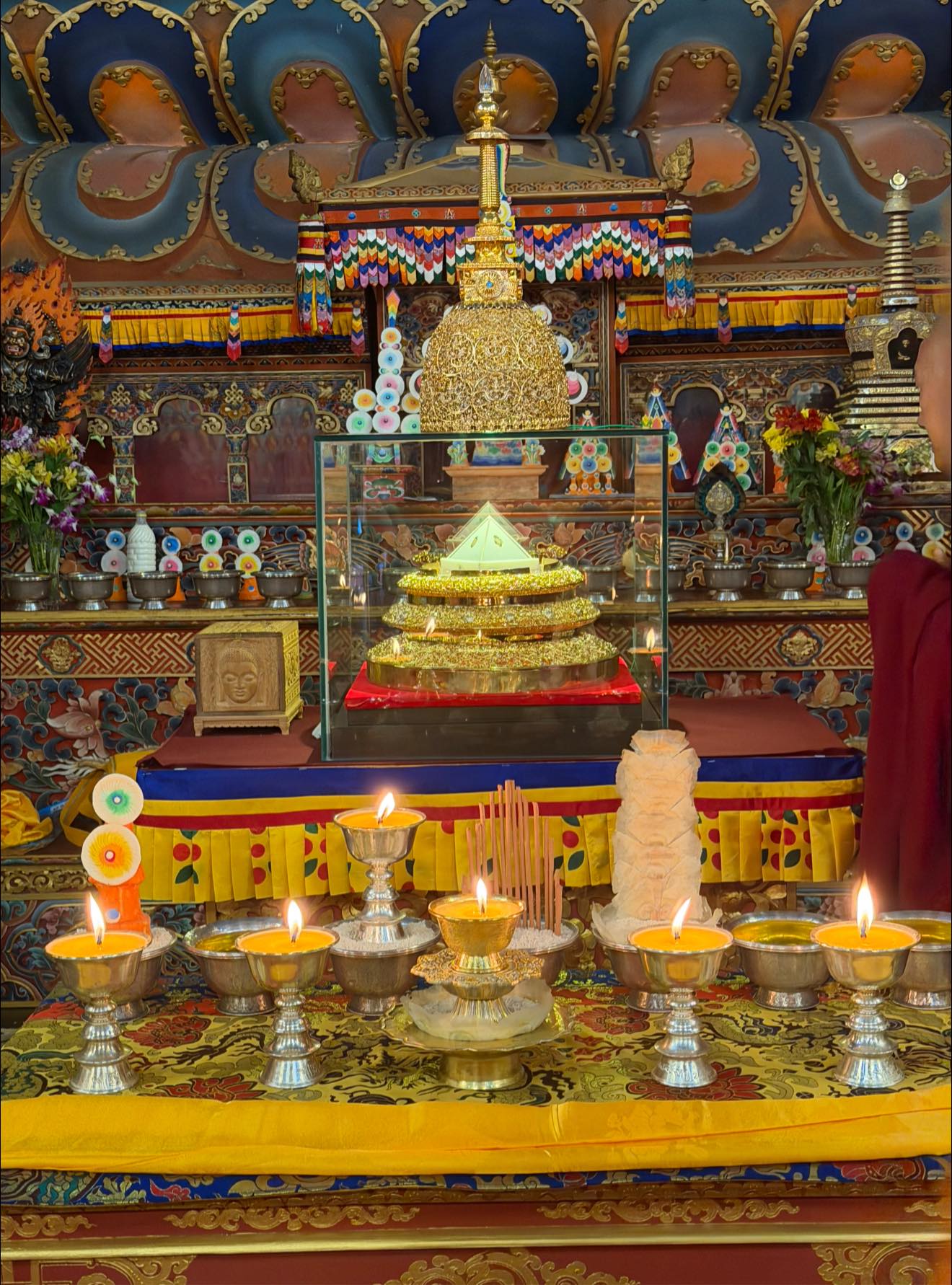 དེ་བཟུམ་མའི་ བདག་ཅག་གི་སྟོན་པ་ སངས་རྒྱས་བཅོམ་ལྡན་འདས་ཀྱི་ རིང་བསྲེལ་བྱིན་ཅན་ཚུ་ རྒྱལ་ཁབ་ནང་ གདན་འདྲེན་ཞུ་སྟེ་ ཐིམ་ཕུ་བཀྲ་ཤིས་ཆོས་རྫོང་གི་ ཀུན་ར་ནང་སྦེ་ ད་ཚུན་གྱི་བར་ན་ དད་ལྡན་མི་སེར་ཡོངས་ལུ་ མཇལ་ཁ་གནང་སྟེ་ བཞུགས་སུ་གསོལ་ཡོད་པའི་གནས་ཚུལ།